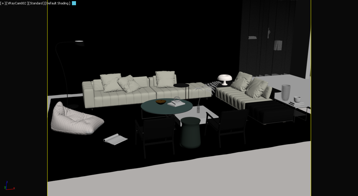 On the periphery, subtle details elevate the atmosphere—a sculptural floor lamp casting ambient light, a minimalistic side table adorned with artisanal glassware, and a deep-pile area rug that grounds the ensemble with warmth and texture. A single fern extends its delicate fronds into the space, a whisper of nature amidst the structured elegance.