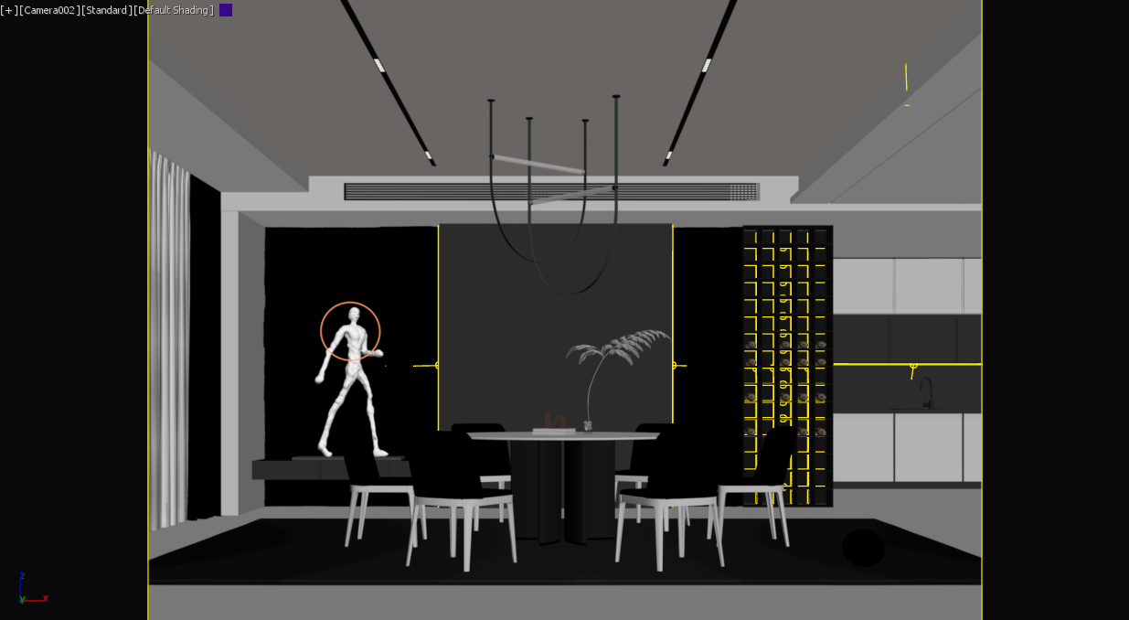 Sculptura Vault merges artistic elegance with modern luxury. The illuminated statue inset into the stone wall creates a dynamic focal point, exuding a sense of human form and creativity. The textured dining chairs, paired with a sleek circular table, add layers of refinement and comfort.