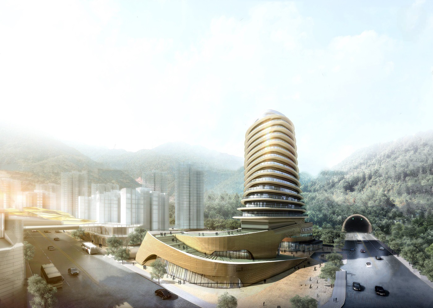 The tower incorporates luxury residences, wellness facilities, and an observation deck offering panoramic views of the surrounding valleys and cityscape. At its base, a dynamic cultural hub integrates open plazas and green terraces, creating a vibrant communal space for residents and visitors alike. With eco-friendly materials and energy-efficient technologies, Solivor Summit stands as a testament to innovative design and environmental stewardship, redefining urban integration with nature.